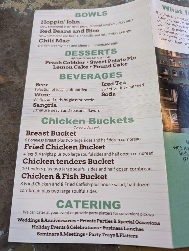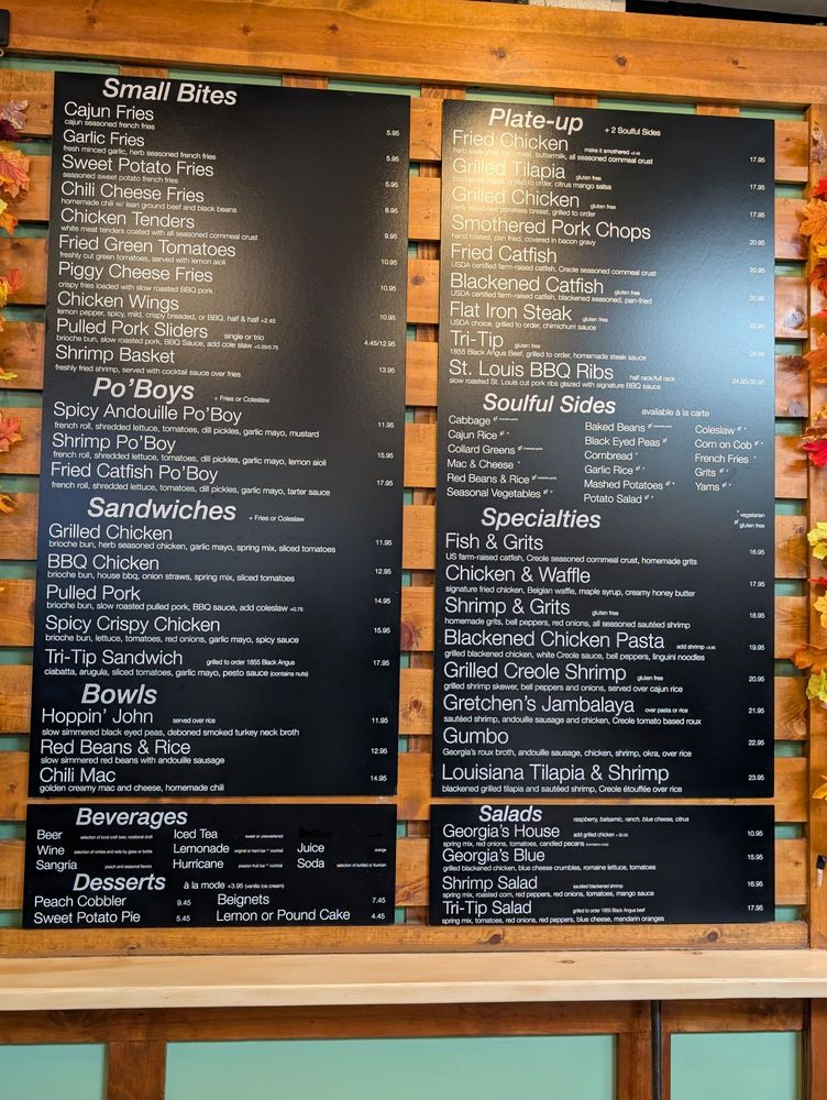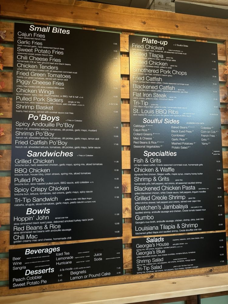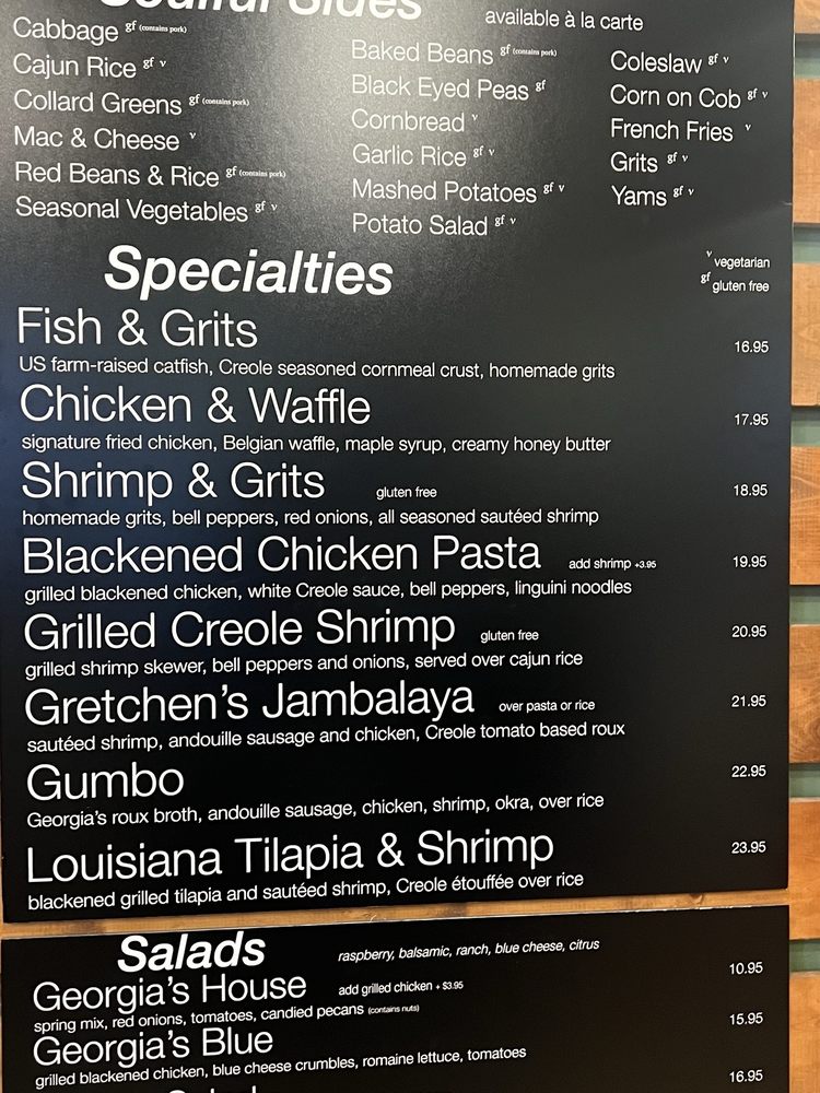 Menu Staples: Indulge in dishes like Gretchen's Jambalaya, fried chicken, and creamy mac and cheese, each served with a generous helping of flavor.